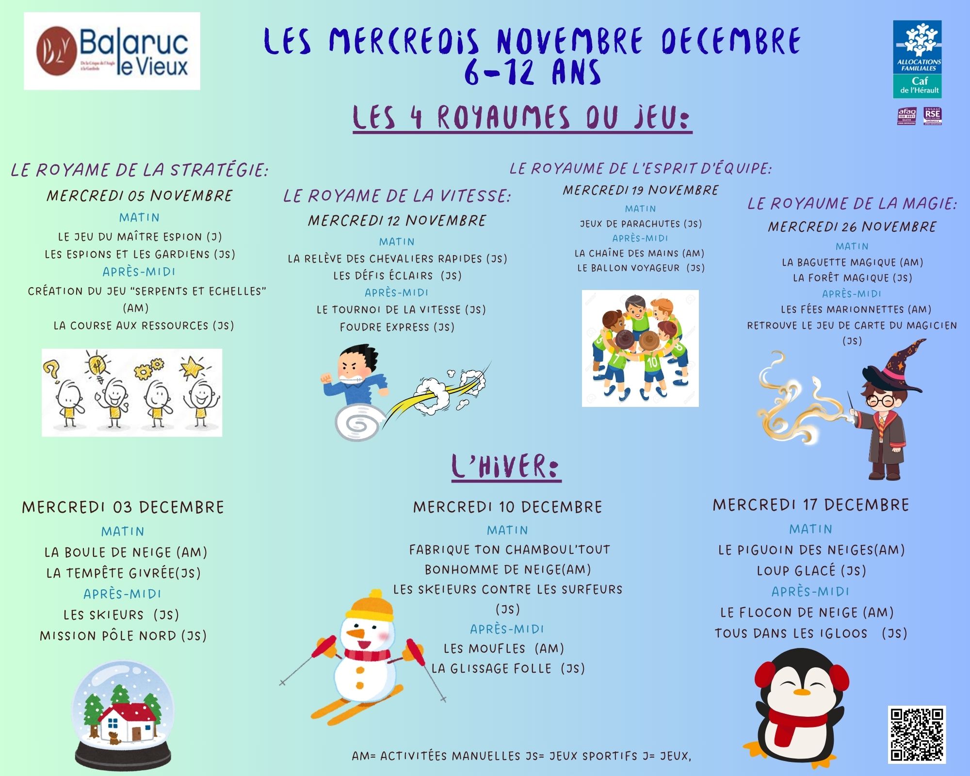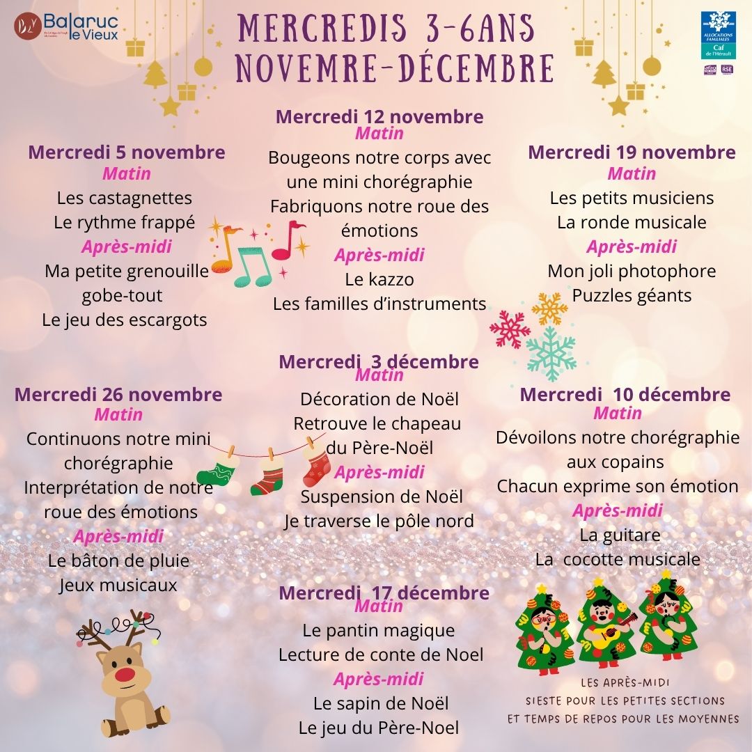 Veuillez trouver ci-dessous en téléchargement les plannings des mercredis Maternelle, Primaire et de l'Espace Jeunes