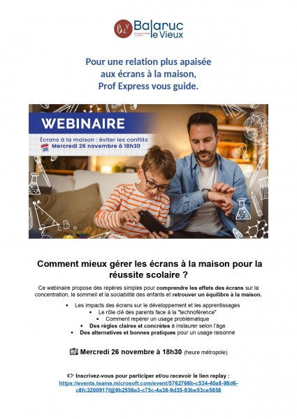 Ce webinaire propose des repères simples pour comprendre les effets des écrans sur la concentration, le sommeil et la sociabilité des enfants et retrouver un équilibre à la maison.