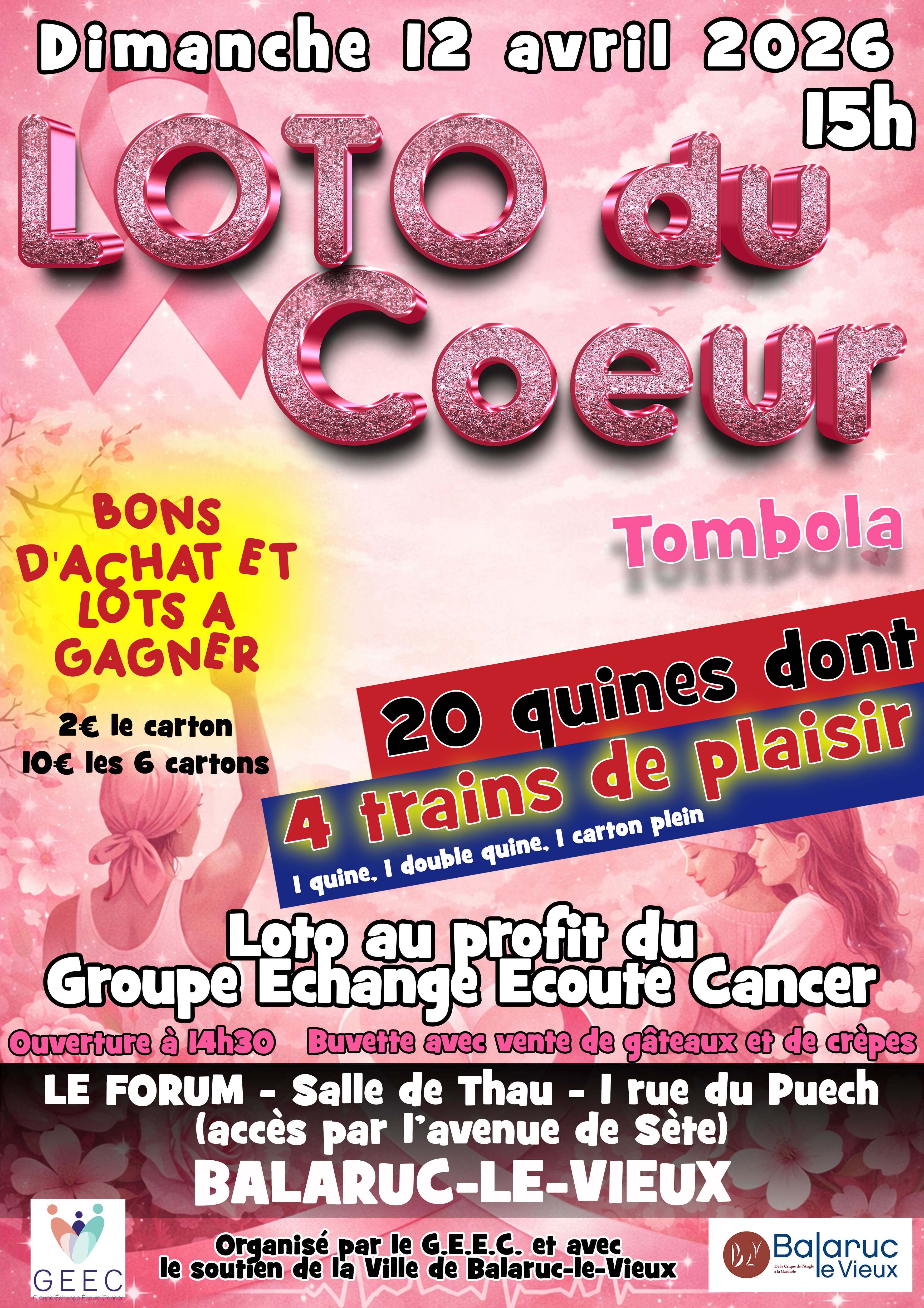 L'association GEEC organise le LOTO DU COEUR le dimanche 12 avril à 15h (ouverture à 14h30)