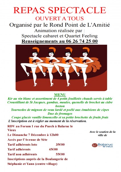 .Rond point de l'amitié : Repas spectacle dimanche 7 décembre